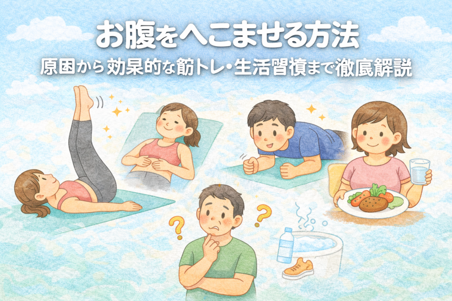 ChatGPT Image 2026年2月21日 21_11_14お腹をへこませるには原因理解と正しい対策がカギ。なぜお腹が出るのか、普段の生活習慣から見直すポイント、おすすめの筋トレ・エクササイズ、食事・姿勢改善まで具体的な方法を丁寧に解説します。