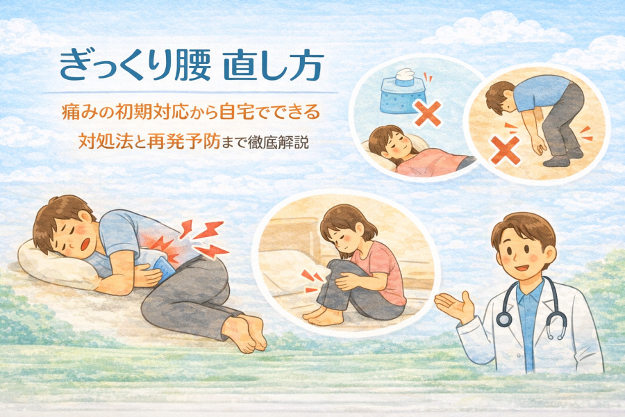 ぎっくり腰 直し方 に特化した完全ガイド。急な激痛で動けないときの応急処置、痛みが和らいだ後のセルフケア、やってはいけないNG行動、病院受診の目安まで、医療情報を元にわかりやすく解説します。