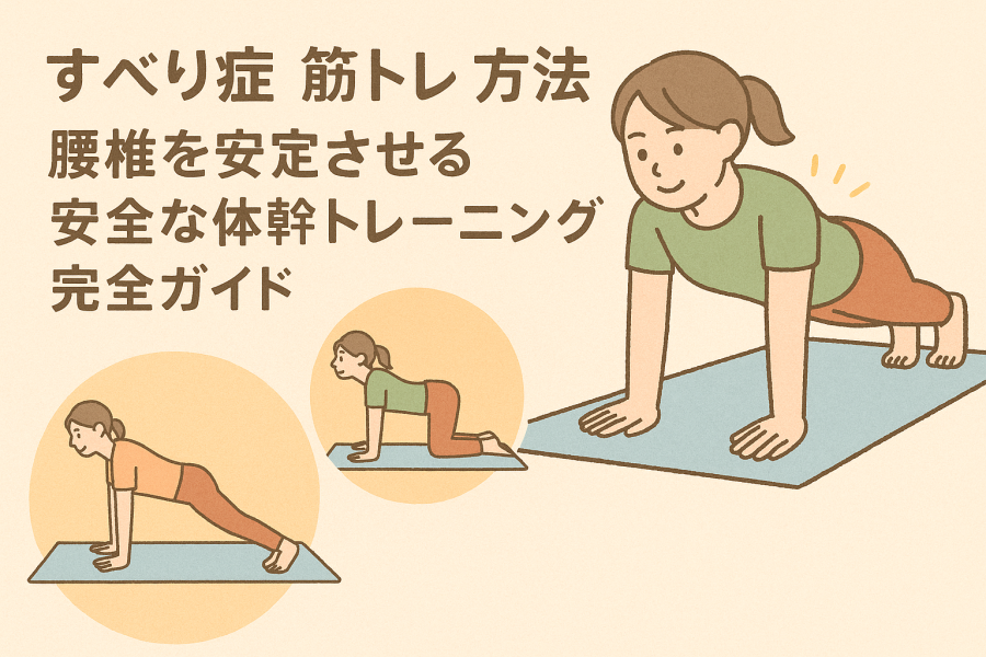すべり症 筋トレ 方法を丁寧に解説。腰椎すべり症でも安心してできる筋トレメニュー、注意点、ストレッチとの組み合わせ、日常での予防法まで徹底ガイドします。