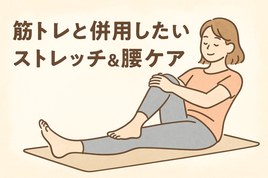 「筋トレだけやっていれば大丈夫?」と聞かれることがありますが、実はストレッチや腰ケアも大切だと言われています。筋肉は使ったあとに緩めることで、体のバランスが整いやすくなると考えられているんです。特にすべり症の場合、腰まわりだけでなく、股関節や太ももの硬さも影響すると言われています。