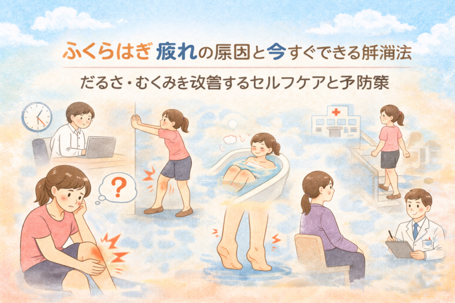 ふくらはぎ 疲れを感じる原因は、筋肉の使いすぎだけでなく血行不良やむくみ、姿勢の乱れなどさまざまです。本記事では、だるさや張りが起こる理由から、自宅でできるストレッチ・マッサージ・生活習慣の見直し、受診の目安までわかりやすく解説します。