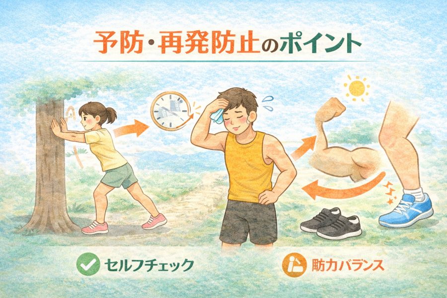 再発を防ぐためには、急な負荷の増加を避けることが大切だと言われています。たとえば、久しぶりの運動でいきなり長距離を走るのではなく、距離や時間を少しずつ増やしていく方法がすすめられることがあります。ウォーミングアップやクールダウンを丁寧に行うことも、負担軽減につながる可能性があると紹介されています。