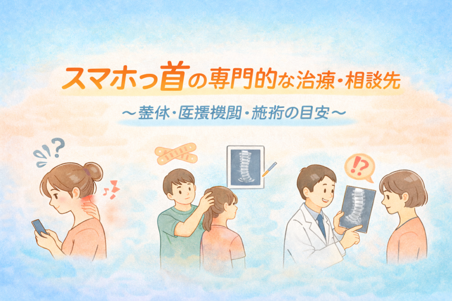 スマホっ首は生活習慣や姿勢の影響が大きいと言われていますが、首や肩の違和感が長期間続く場合や、日常生活に支障を感じる場合は、専門家の視点を取り入れることも一つの選択肢と考えられています。