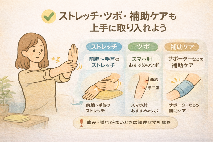 #スマホ肘 #ストレッチ習慣 #ツボケア #補助ケア #無理なく続ける