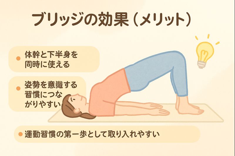 無理なく体幹を意識するきっかけになる点が、ブリッジの強みだと考えられています。