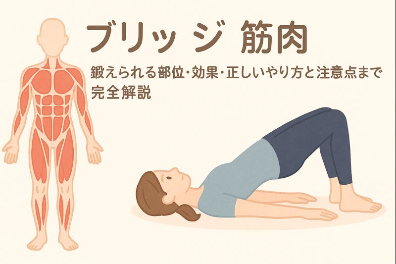 ブリッジ 筋肉トレーニングで鍛えられる部位(大臀筋・ハムストリングス・脊柱起立筋など)や正しいフォームを徹底解説。効果・メリット・注意点・初心者向けのコツまで、今日から実践できる情報満載の記事です。