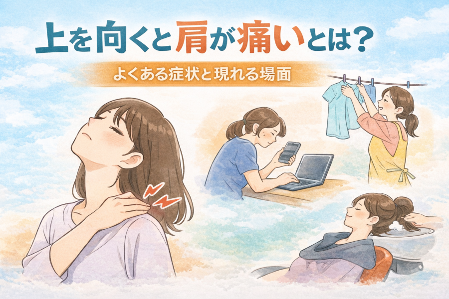 「上を向くと肩が痛い 治し方」で調べている人からよく聞くのが、「普段は平気なのに、上を向いた瞬間だけ肩がつらい」という声です。