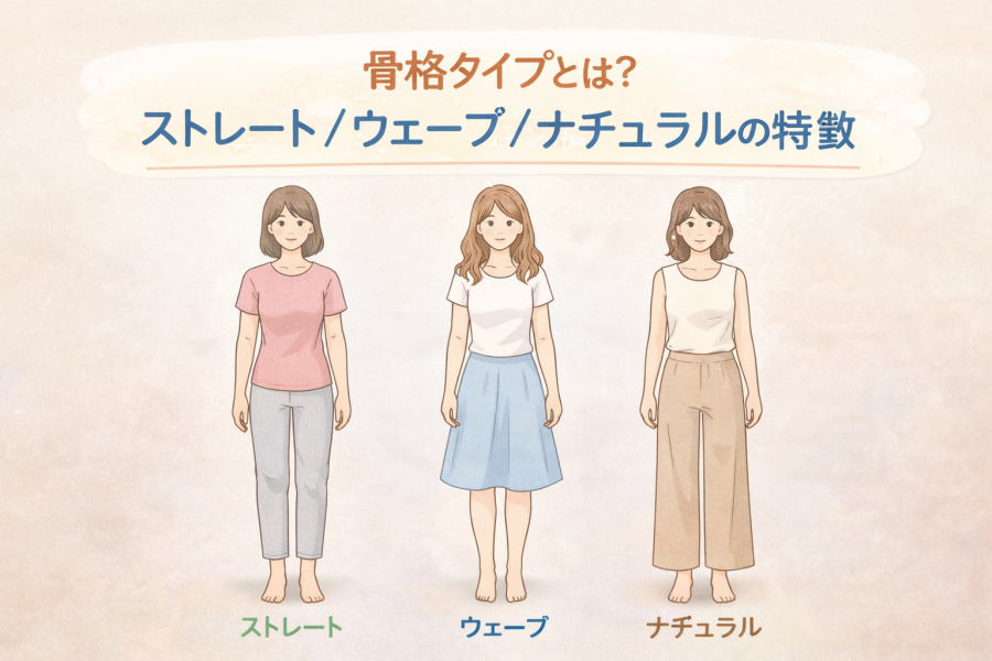 「自分はストレート?それともウェーブ?」と迷っていませんか。骨格タイプは専門家に見てもらう方法もありますが、まずは簡単なセルフチェックから始める人が多いと言われています。