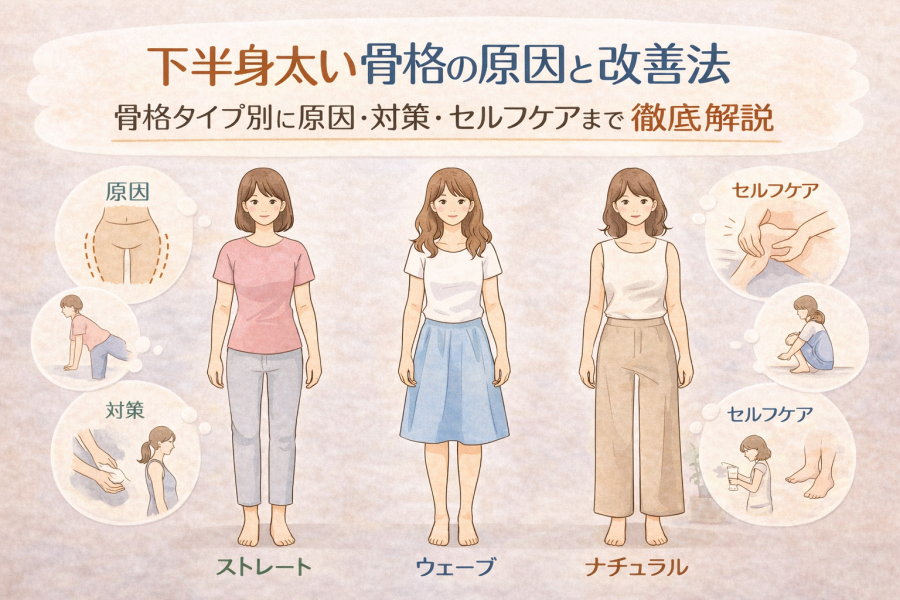 ChatGPT Image 2026年2月14日 18_11_39下半身太い 骨格が気になるあなたへ。骨格タイプとは何か、太く見える原因、骨格タイプ別の特徴と効果的な改善方法やセルフケアまで、専門家視点でわかりやすく解説します。
