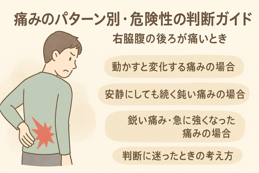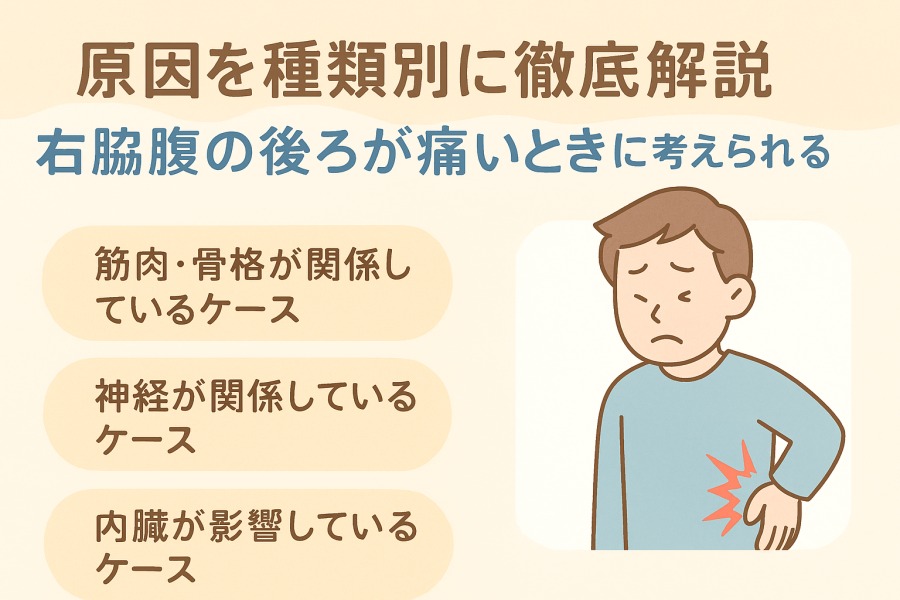 右脇腹の後ろが痛い症状は、筋肉由来や内臓疾患まで幅広い原因が考えられます。本記事では痛みの特徴別に原因を解説し、すぐできる対処法・受診の目安を専門医の情報を元に詳しく解説します。