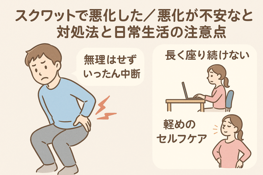 ChatGPT Image 2025年12月8日 16_22_30「スクワットをしたら坐骨神経痛が強くなった気がするんですが、どうすればいいですか?」