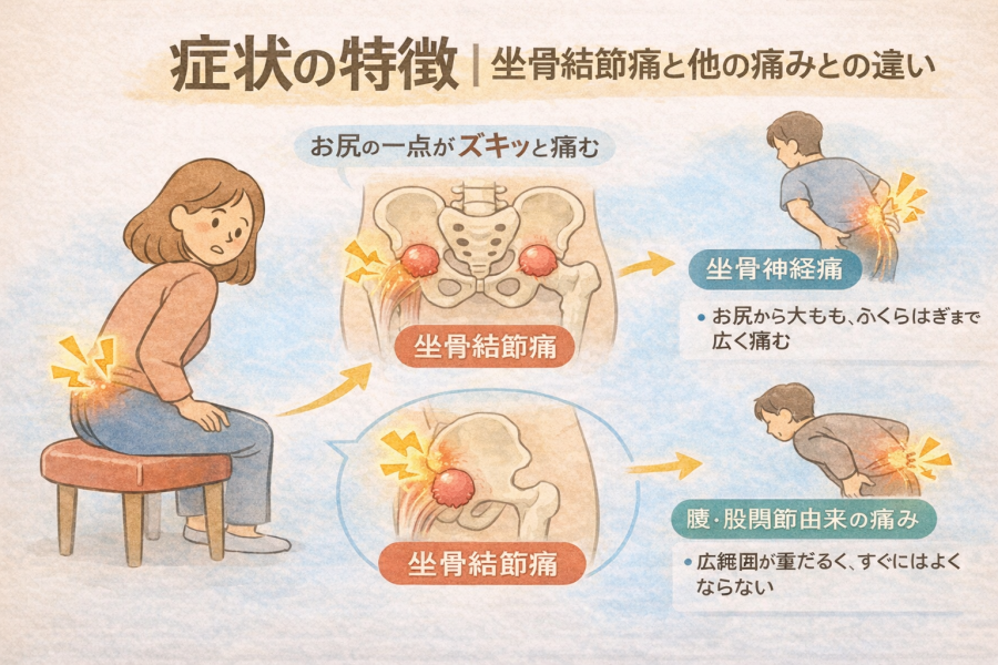 「これって坐骨結節の痛みなのかな?」と迷いますよね。