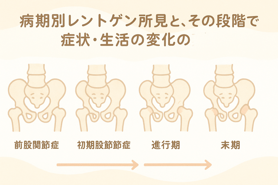 #病期別レントゲン所見  #変形性股関節症の進行  #生活で感じる変化  #症状と画像のズレ