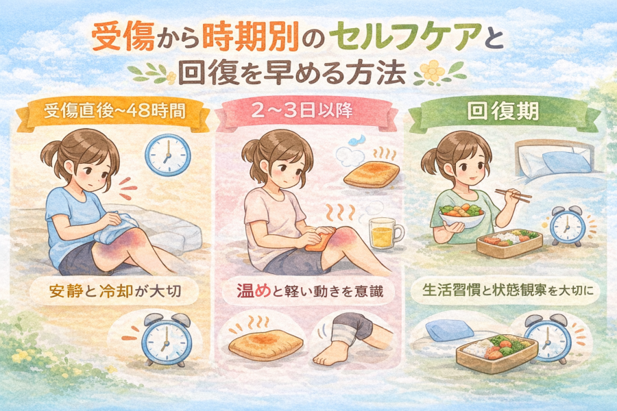 受傷直後〜48時間:安静と冷却を優先する時期