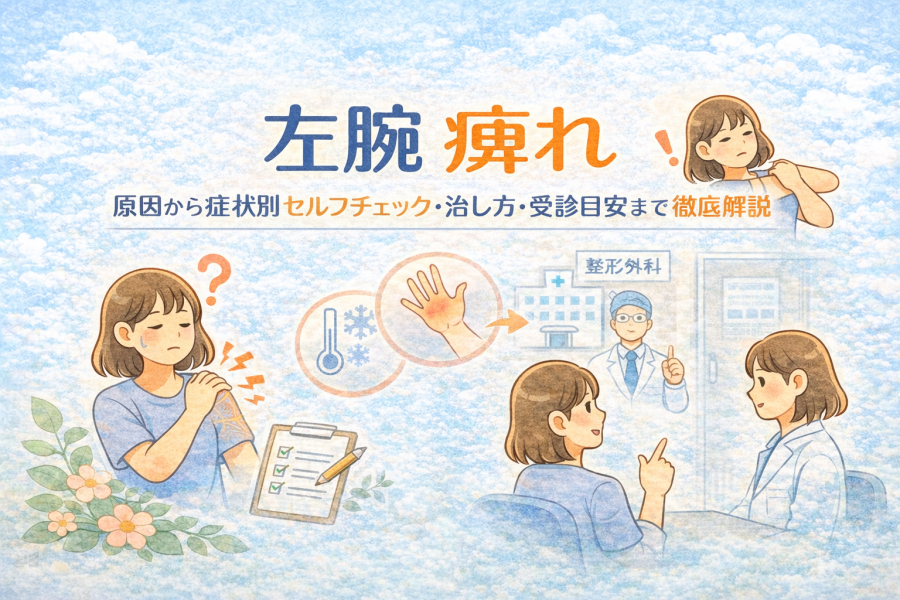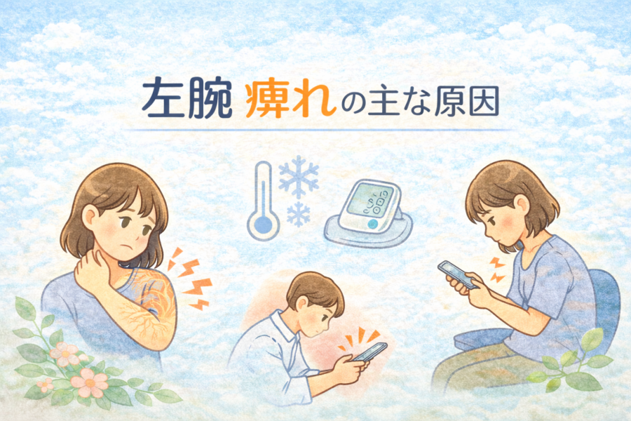 左腕 痺れ に悩む方へ。左腕がしびれる原因(神経圧迫・血流不良・疾患リスク)、症状パターン別のチェック方法、セルフケアと受診の目安まで、専門知識に基づいてわかりやすく解説します。