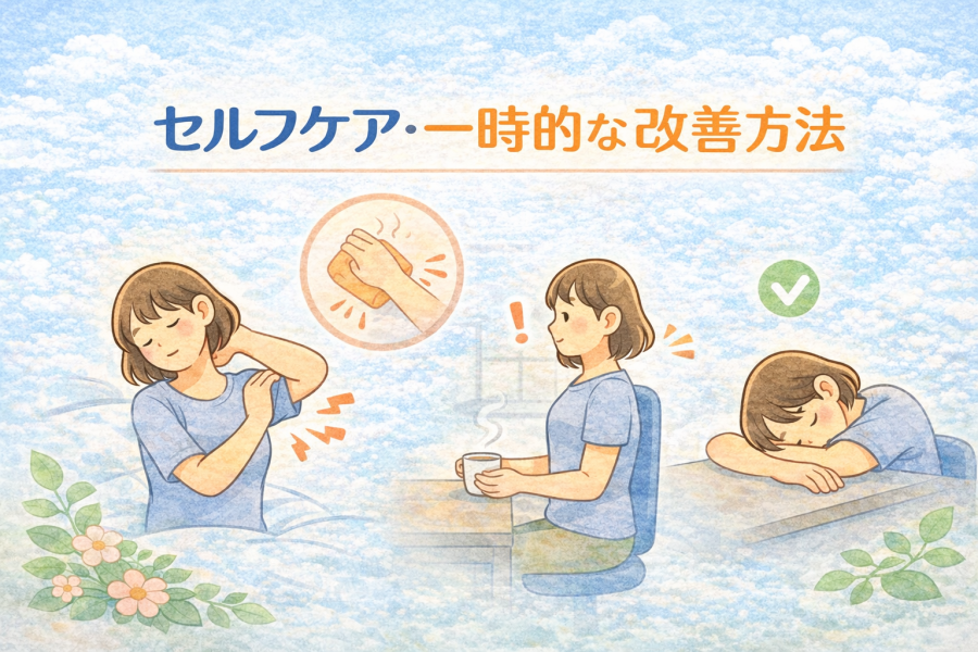 また、冷えを感じる場合は、腕や首まわりを温めることで血行が促され、違和感が和らぐケースもあるそうです。