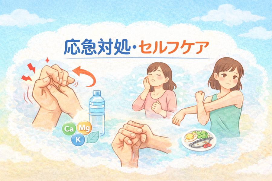 #指がつる対処法#セルフケア#ストレッチ習慣#水分補給#ミネラルバランス