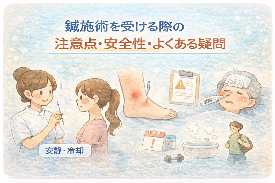 初めて来院する方から、よく聞かれる疑問です。結論から言うと、鍼施術は国家資格者が行い、体の状態を見ながら進めることが大切だと言われています。注意点を知っておくことで、不安を減らしやすくなります。