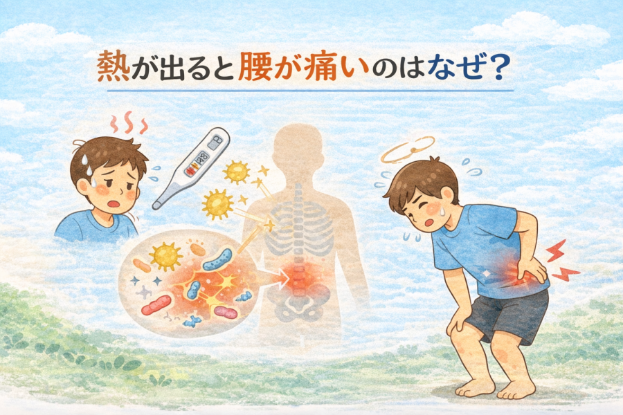 まず知っておきたいのが、発熱は体がウイルスや細菌と闘っているサインだという点です。体内では免疫が活発に働き、その過程で炎症に関わる物質が分泌されます。この影響で、関節や筋肉に重だるさや痛みを感じやすくなり、腰にも違和感が出ることがあると言われています。