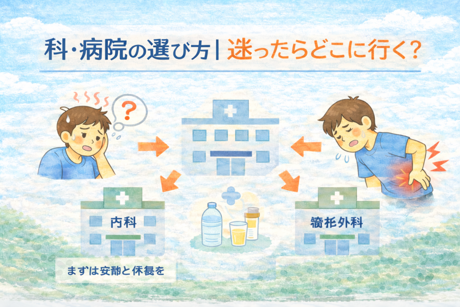 こう迷って検索する方はとても多いです。実際、熱と腰痛が同時に出ると、科選びがわかりづらいと言われています。ここでは症状の特徴ごとに、考え方の目安を整理します。