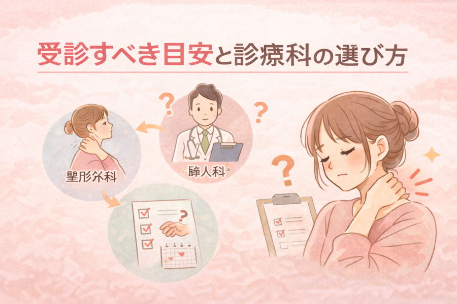 生理中に首の痛みがあると、「このまま様子見でいいのかな?」「来院したほうがいい?」と迷いますよね。ここでは、生理 首が痛いと感じたときの目安と、相談先の考え方を整理します。