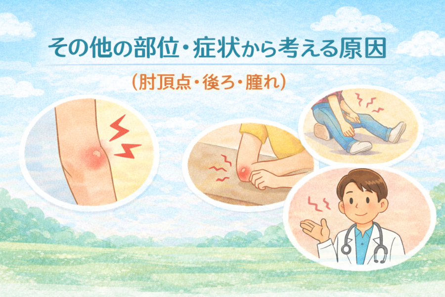 4.その他の部位・症状から考える原因(肘頂点・後ろ・腫れ)