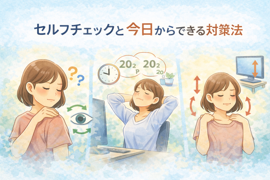 #肩こり #目の奥が痛い #セルフチェック #セルフケア #今日からできる対策