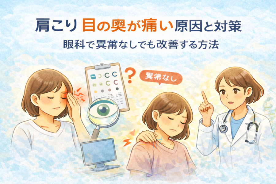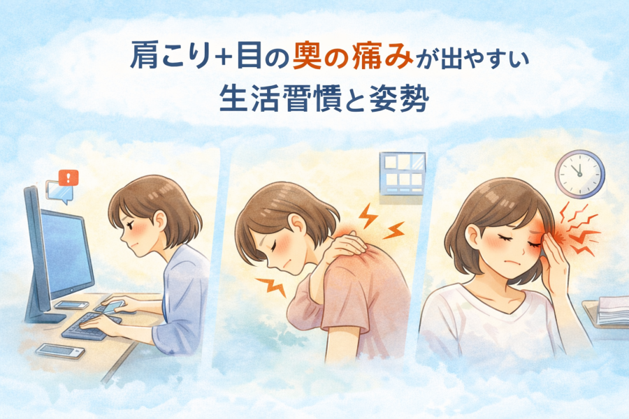 ChatGPT Image 2026年2月2日 23_33_59肩こり 目の奥が痛い症状の原因(血流不良・眼精疲労・姿勢・自律神経)を解説し、今日からできるセルフケアや専門的な改善法まで詳しく紹介します。