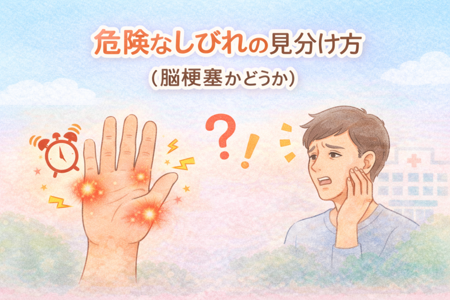 ゆっくり出てくるしびれとは違い、「急に変だ」と感じる点がひとつの目安になります。