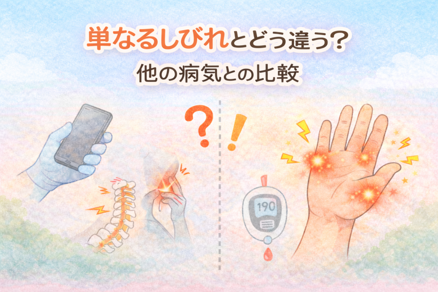 そう感じる方は多いですが、しびれの原因はひとつではありません。ここでは、脳梗塞によるしびれと、よくある他の病気によるしびれの違いを整理してみます。