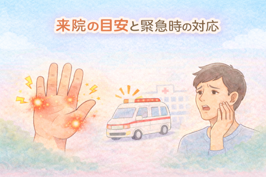 強いしびれや複数の症状が同時に出た場合は、周囲に助けを求めることが大切と言われています。無理に動かず、症状が出た時間や内容を伝えられるようにしておくと、対応がスムーズになると考えられています。