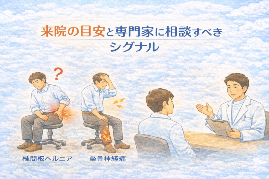 こんな迷い、ありますよね。腰の不調は一時的な疲れの場合もありますが、来院を検討したほうがよいサインが出ることもあると言われています。ここでは、その目安を整理します。
