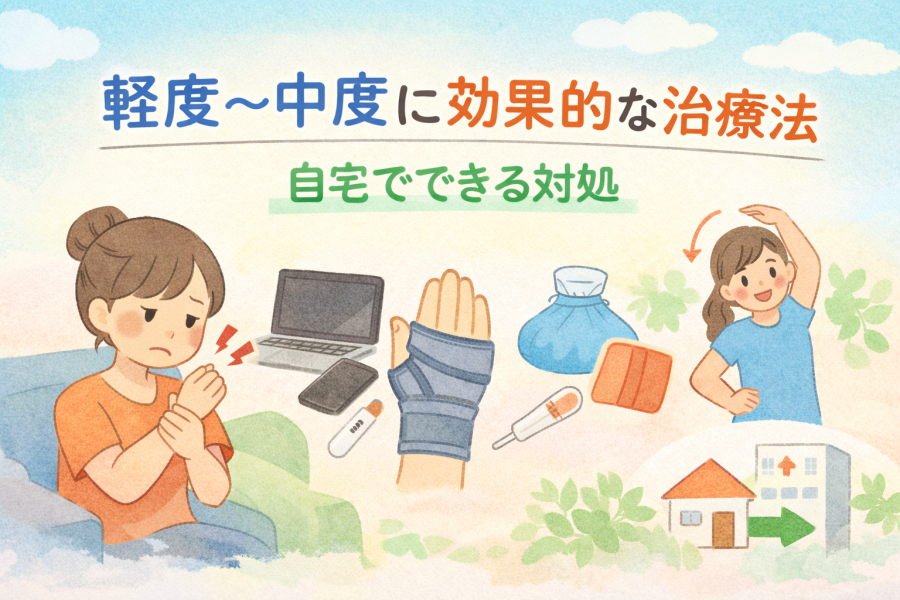 腱鞘炎の治療法について、軽度〜重度の症状ごとの効果的な方法(保存療法・装具・ストレッチ・注射・手術)をわかりやすく解説します。日常でできるセルフケアや医療機関での治療法も紹介。
