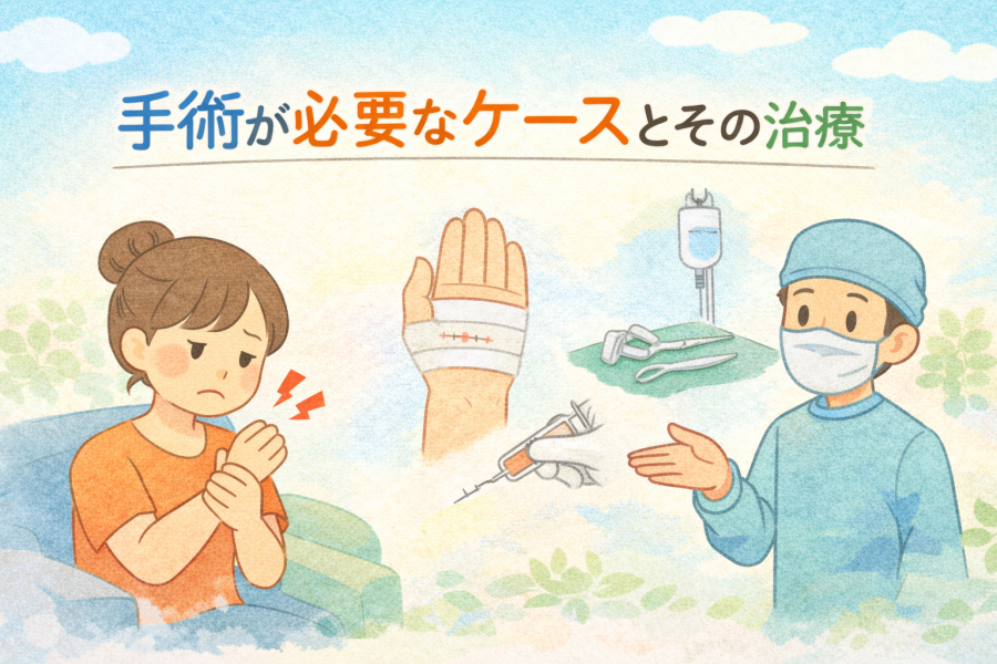 特に、指が引っかかるように動く“ばね指”の状態が強く、日常生活に大きな支障が出ているケースでは、保存的な検査だけでは改善しづらいこともあるそうです。