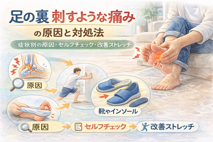 ChatGPT Image 2026年2月21日 17_34_51足の裏 刺すような痛み に悩んでいませんか?本記事では原因ごとの症状特徴、セルフチェック方法、簡単にできる対処法や受診の目安まで徹底解説します。