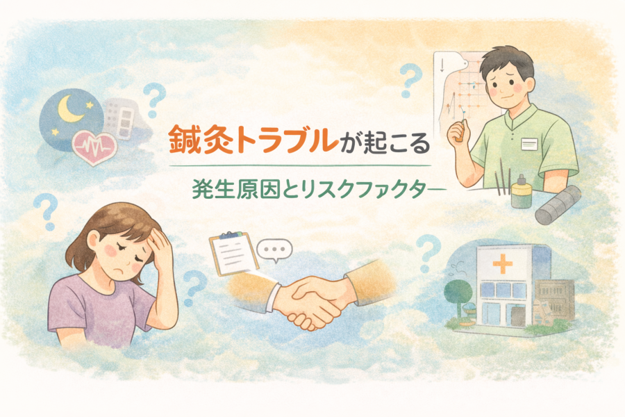 そう思いますよね。実は、鍼灸トラブルは一つの原因だけで起こるわけではないと言われています。施術を受ける側の体の状態と、施術を行う環境や対応が重なったときに、リスクが高まると考えられています。