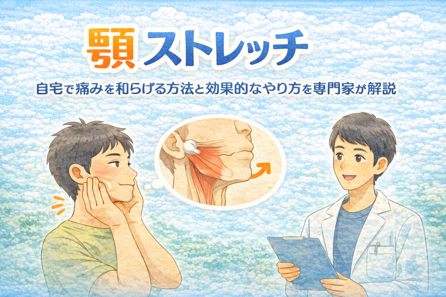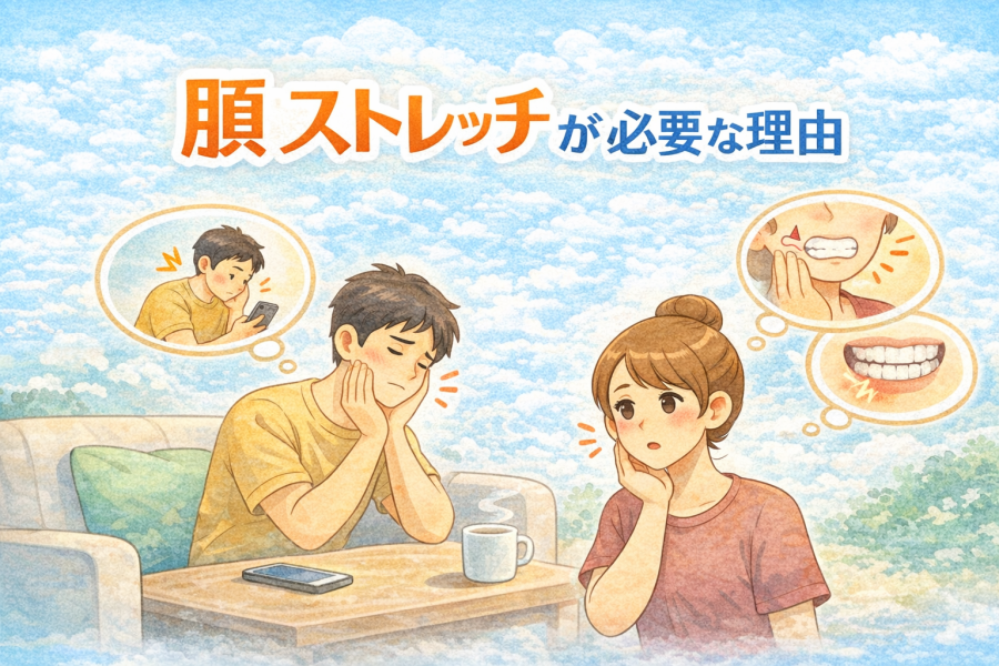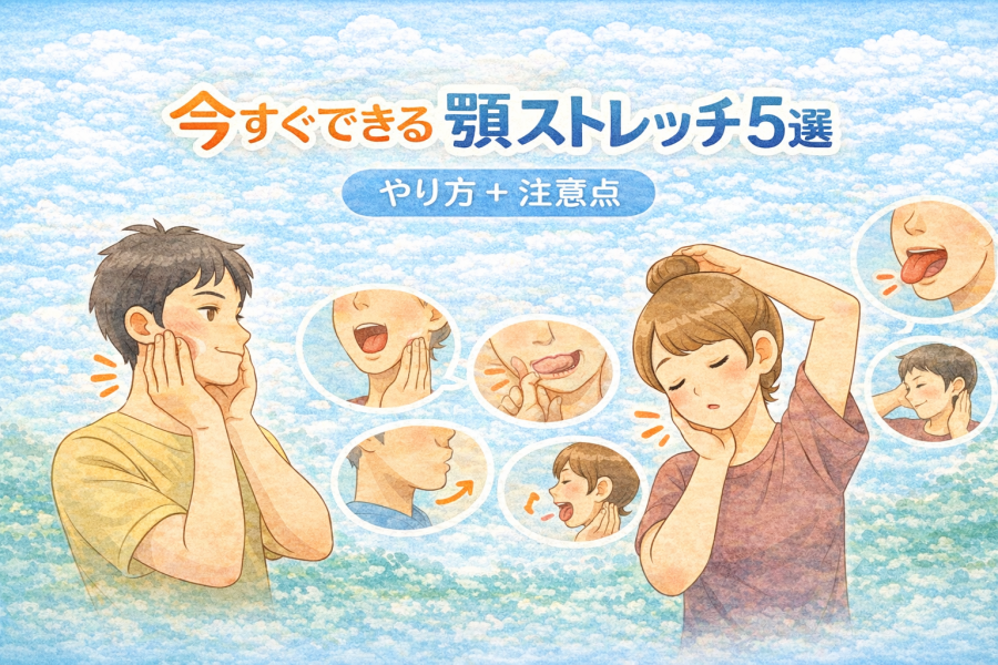 ChatGPT Image 2026年1月26日 18_56_12顎 ストレッチ|顎の痛み、開けにくさ、カクカク音などの顎関節の不調を自宅で改善するストレッチ方法をわかりやすく解説。咬筋ほぐし、開口ストレッチ、首肩連動法など、今日からできる簡単セルフケアを紹介します。