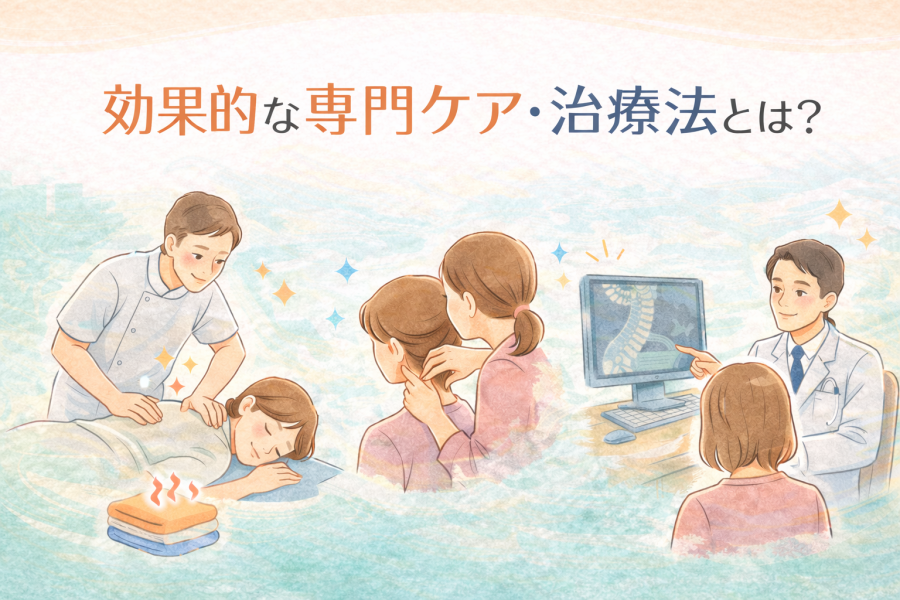 専門ケアでは、首や肩の表面だけでなく、深部の筋肉や筋膜の状態を触診しながら施術を行うケースがあると言われています。