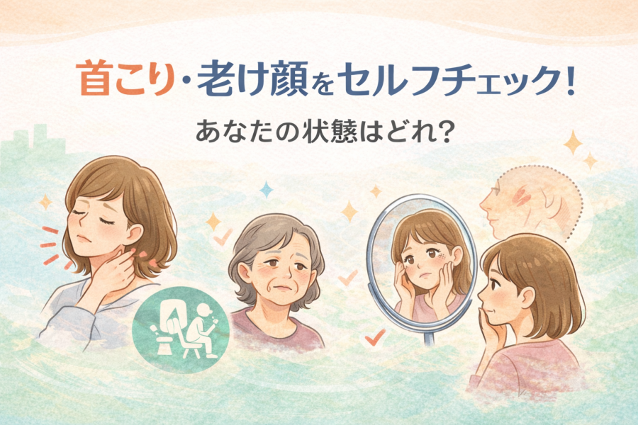 首こりと老け顔は、見た目だけでは判断しづらいもの。まずは今の状態をセルフチェックしてみましょう。