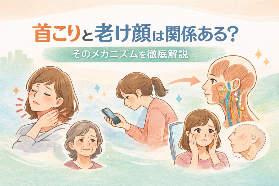 首こりと老け顔は、一見つながらなそうですが、体の構造を見ていくと無関係とは言い切れないようです。ここでは、その仕組みをわかりやすく見ていきましょう。