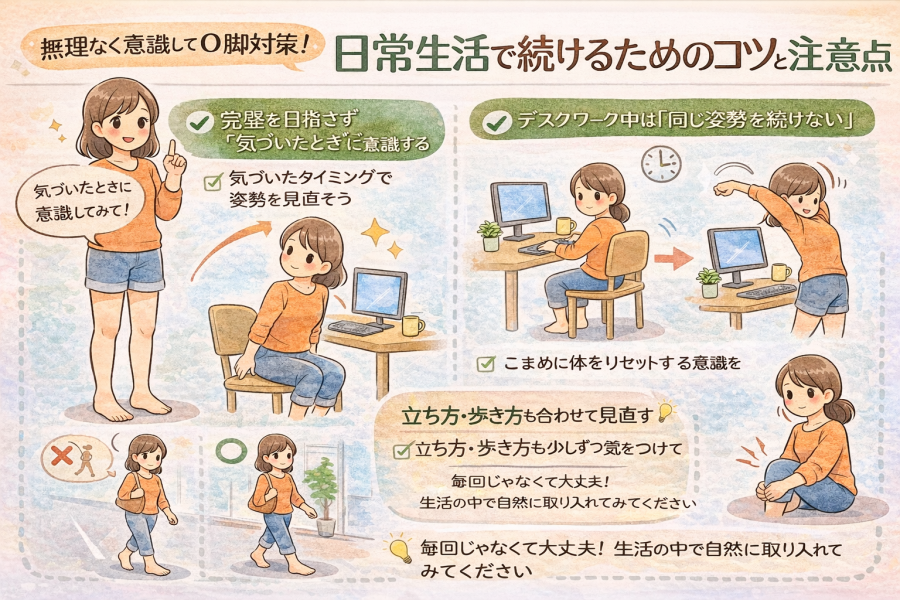 #O脚対策  #日常生活のコツ  #姿勢習慣  #無理なく継続  #体の使い方見直し